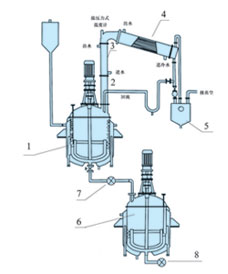 - 1, Fanyingguo 2, vertical fractionation three, four vertical cold, horizontal cold 5, reservoir 6, diluted kettle 7, 8 coarse filter, fine filter